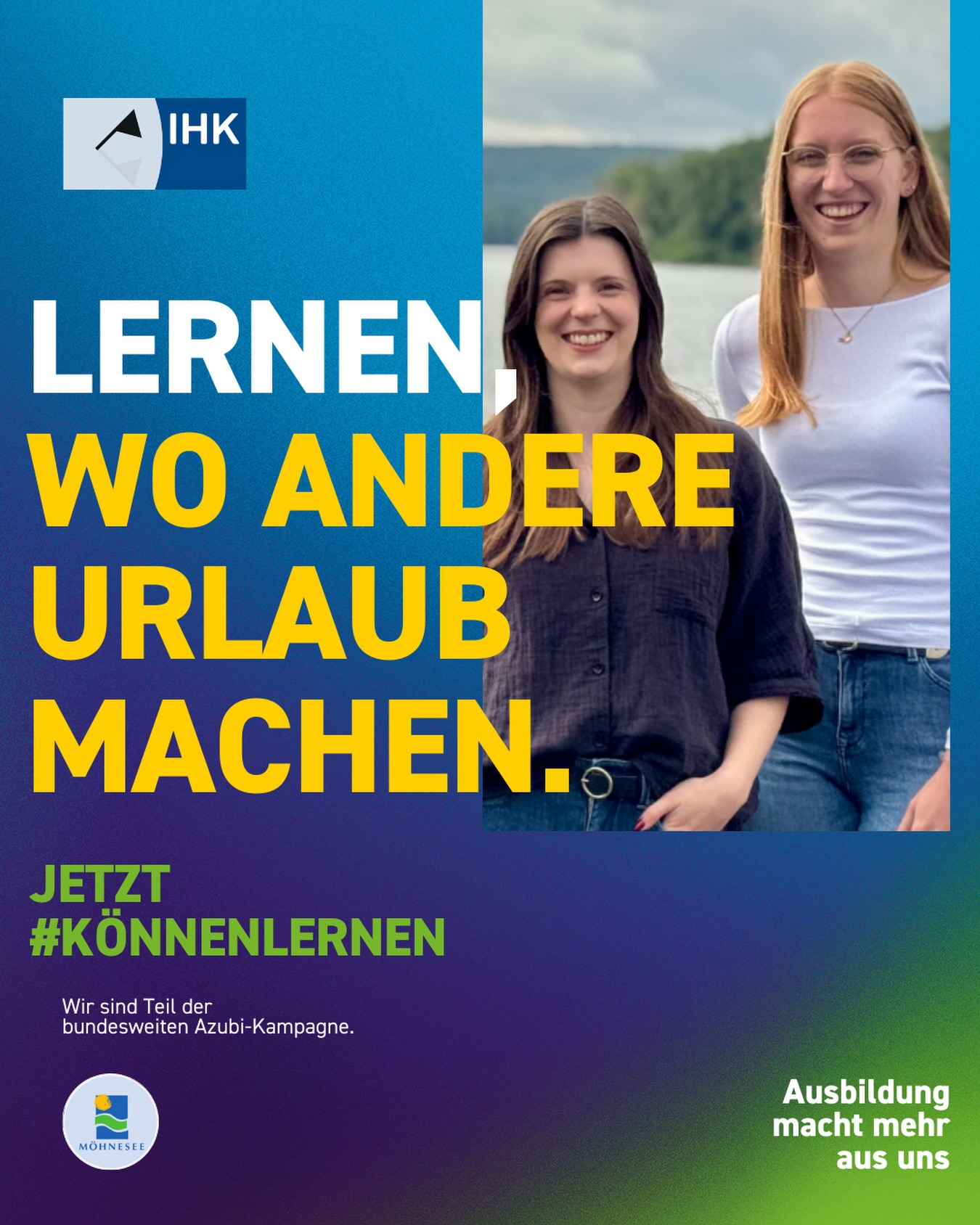 Im Laufe des Jahres halten wir die Ausbildungsbetriebe auf dem Laufenden, die ihr Interesse an #könnenlernen bekundet haben. Dies beinhaltet Maßnahmen wie das Anbringen von „#könnenlernen-Aufklebern“, die Dokumentation von "Erfolgreichen Ausbildungsstarts" auf Instagram/Facebook oder die gemeinsame Planung von Veranstaltungen, bei denen die IHK und Unternehmen kooperieren.