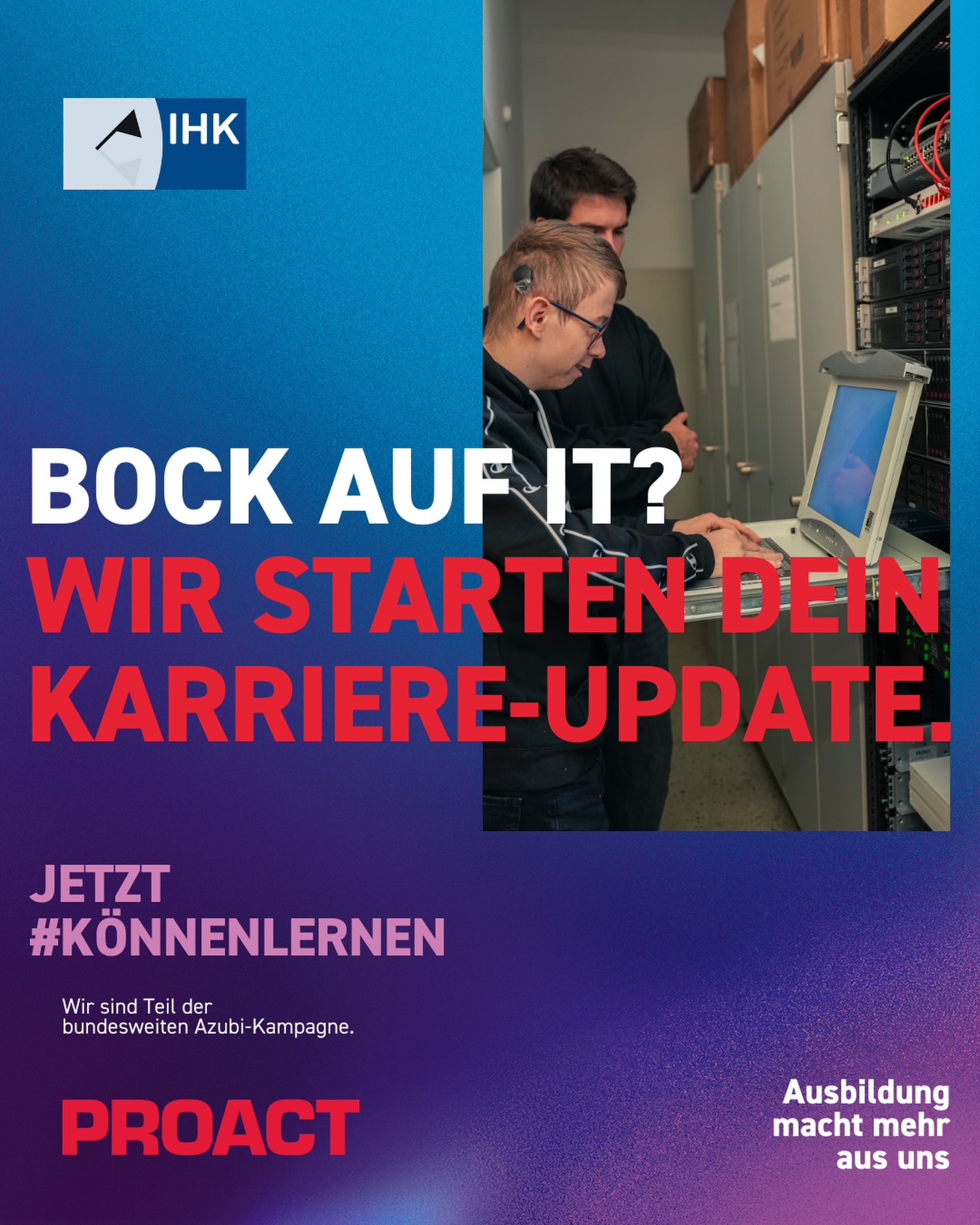 Fachkräftemangel, demografischer Wandel, unbesetzte Ausbildungsplätze – nur trübe Aussichten? Ganz im Gegenteil! Die IHKs sehen darin auch die große Chance, den jungen Menschen in Deutschland zu zeigen, dass Ausbildung und Azubis nie wertvoller waren als heute. Die erste bundesweite Kampagne der IHKs unter dem Motto "Jetzt #könnenlernen" ist eine Einladung an alle Schülerinnen und Schüler, Studienzweifler oder Umsteigerinnen und Umsteiger, das Lebensgefühl Ausbildung zu entdecken.
